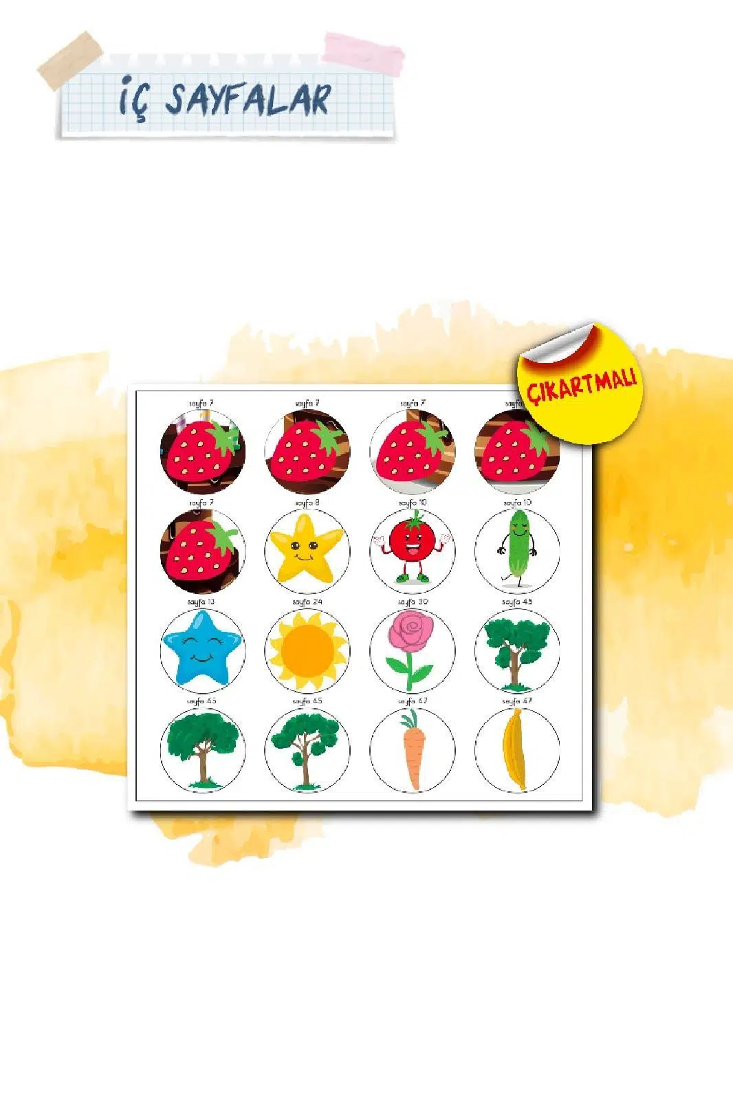 Set içerisinde yer alan 16 adet çıkartma, çocukların etkinliklere aktif katılımını sağlar.