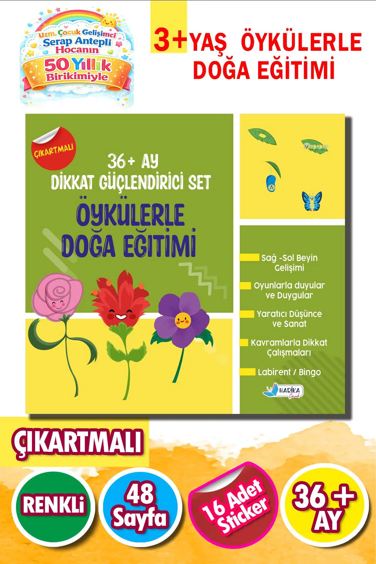 Eğlenceli hikâyeler, dikkat geliştirici etkinlikler ve çıkartmalı çalışmalar ile öğrenme süreci hem keyifli hem kalıcı hale gelir.