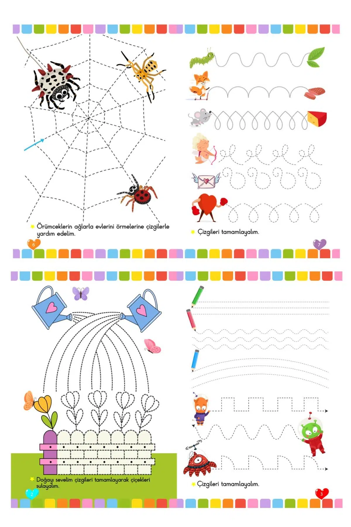 Bu setimizle; 4+ yaş çocukların evde bol bol etkinlik yaparak çizgi çalışmalarıyla el kaslarının gelişip okula başladıklarında daha kolay yazmaları hedeflenmiştir. Böylece ilkokul 1. sınıfa başladıklarında hem fiziksel hem de bilişsel olarak hazır bulunuşlukları sağlanacaktır. Yaratıcılık geliştiren aktivitelerle de çocuğun matematiksel işlemleri kolay yapması amaçlanmıştır. Bilişsel zeka, sosyal - duygusal alan, dil alanı, psikomotor alanda ve özbakım becerilerinde gelişim sağlamaları amaçlanarak hazırlanmıştır. Her çalışma sayfası belli bir amacın gerçekleştirilmesine yöneliktir.