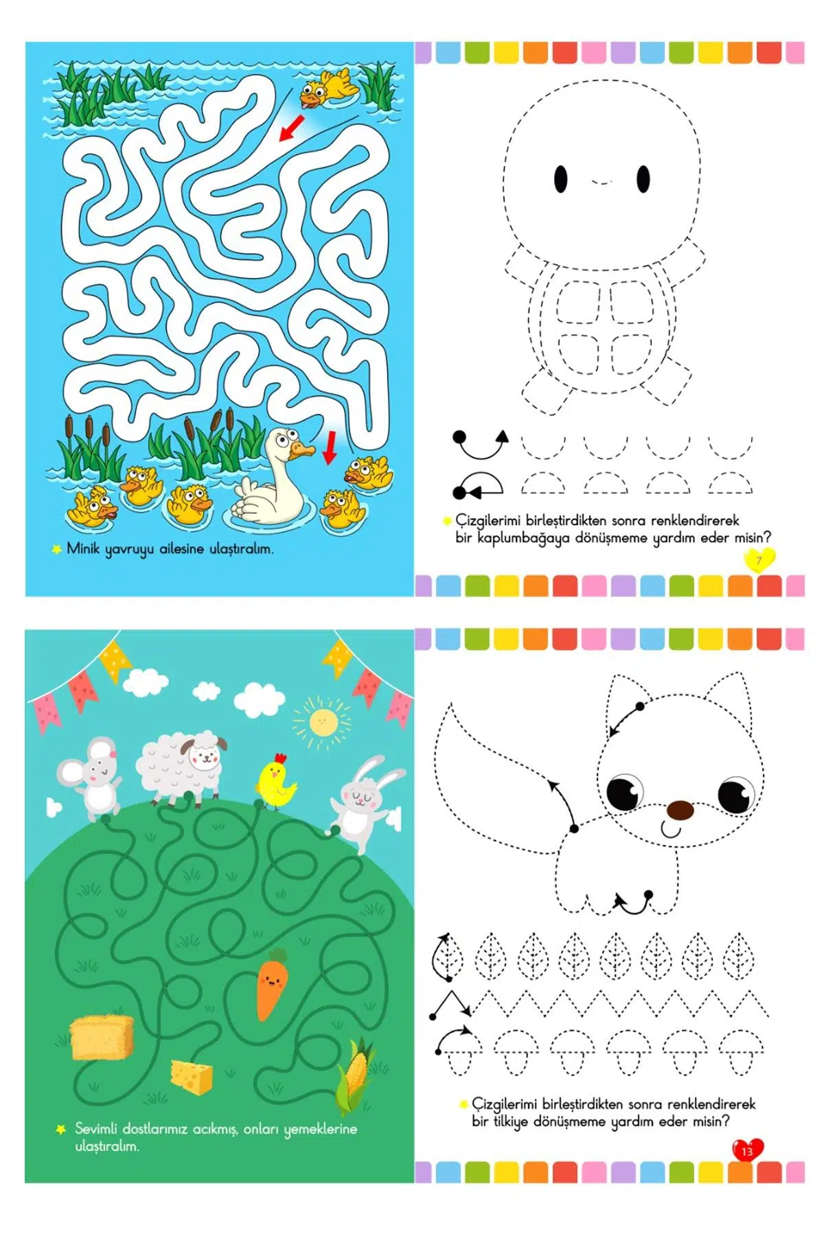 1. Kitap: Nokta Birleştirme: Çizgi çalışmalarına eğlenceli bir başlangıç için; nokta birleştirip boyama ve labirentler içerir