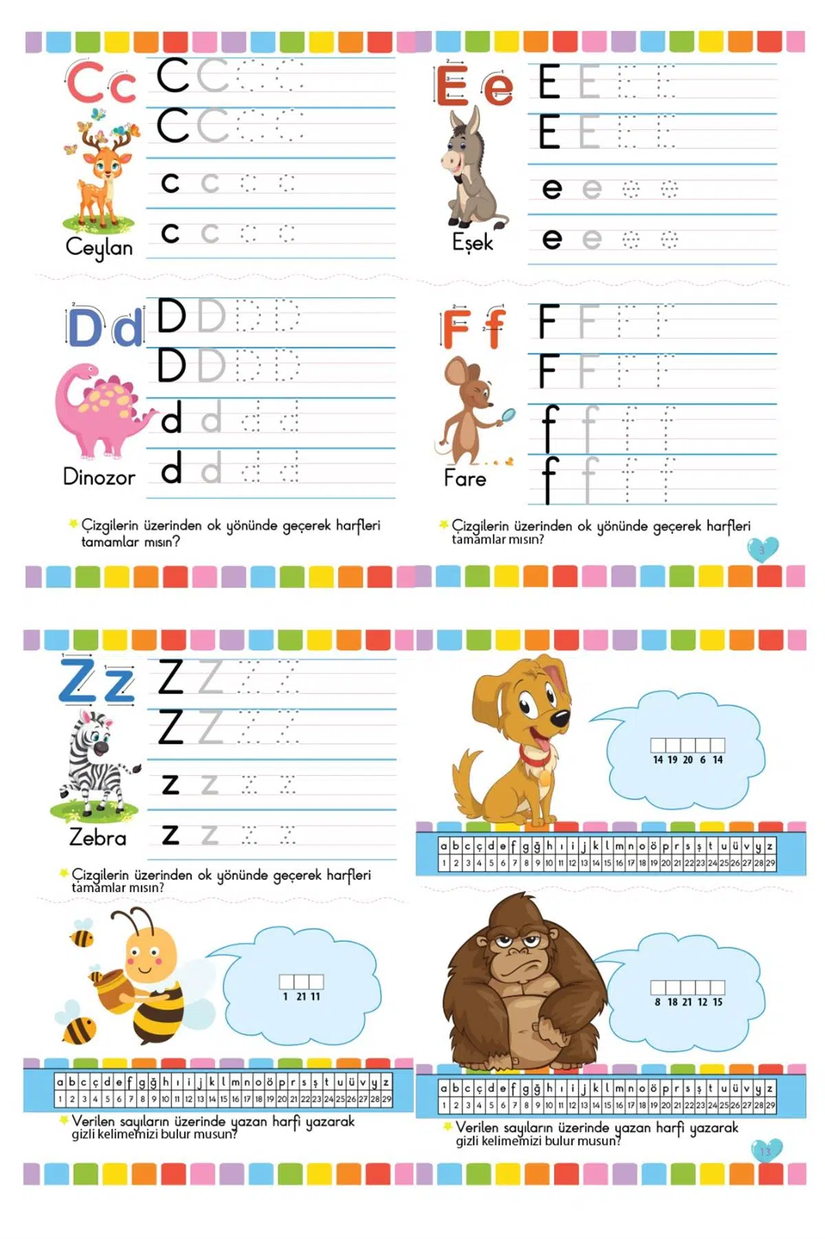 3. Kitap: Harfleri Öğreniyorum: Alfabemizde yer alan 29 harfin okunuş ve yazılışlarını öğretir.
