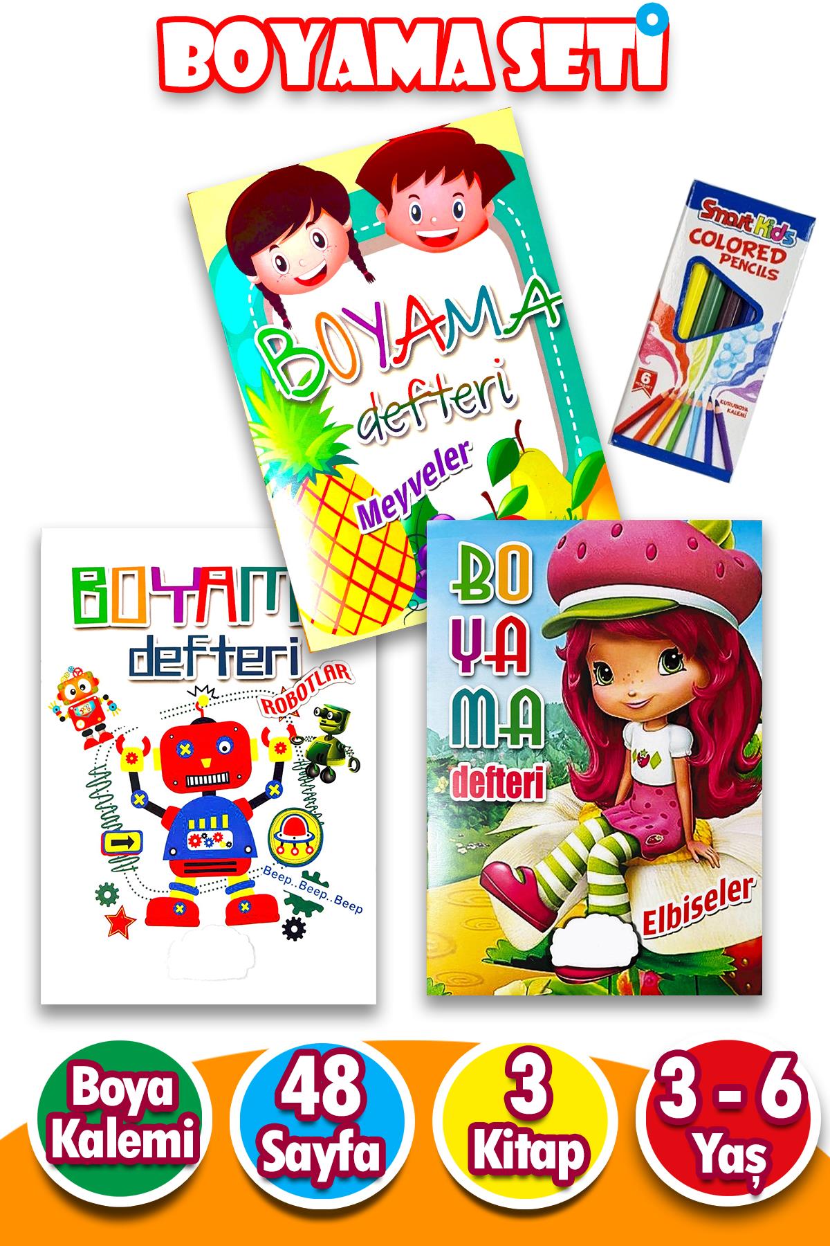 3'lü Boyama Kitabı Seti Eğitici - Öğretici - 6 lı Kuru Boya