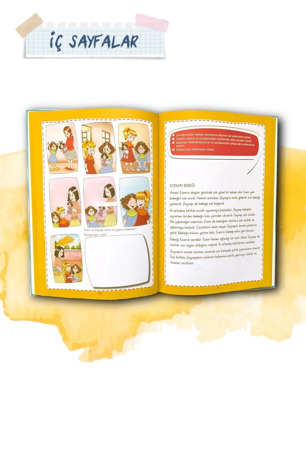 Kitapta çocukların gelişimini destekleyen birçok etkinlik bulunmaktadır: