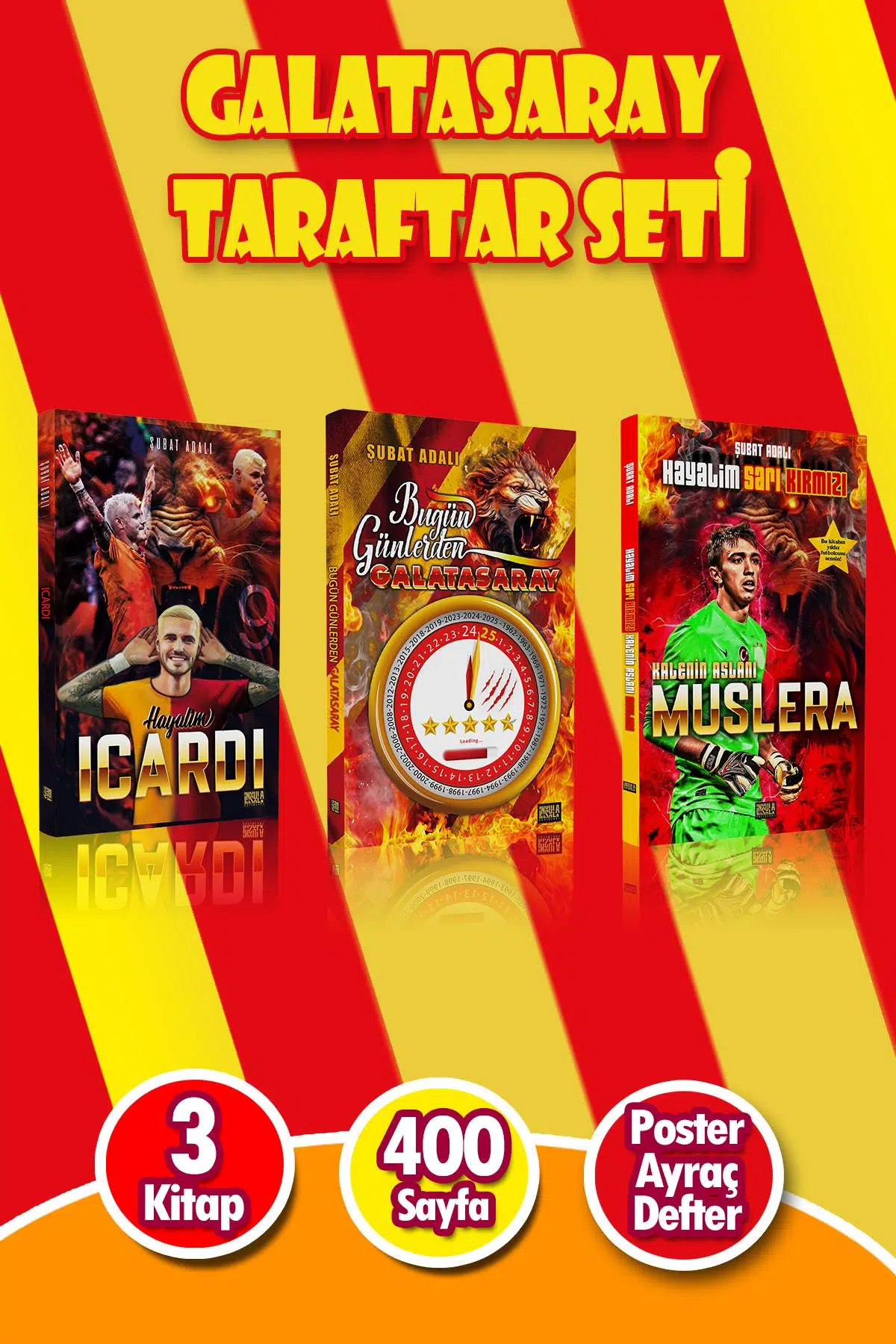 | Etiketler | Şampiyon Galatasaray Futbolcu Kitapları Seti - Icardi, Muslera, Galatasaray Karne Hediyesi |